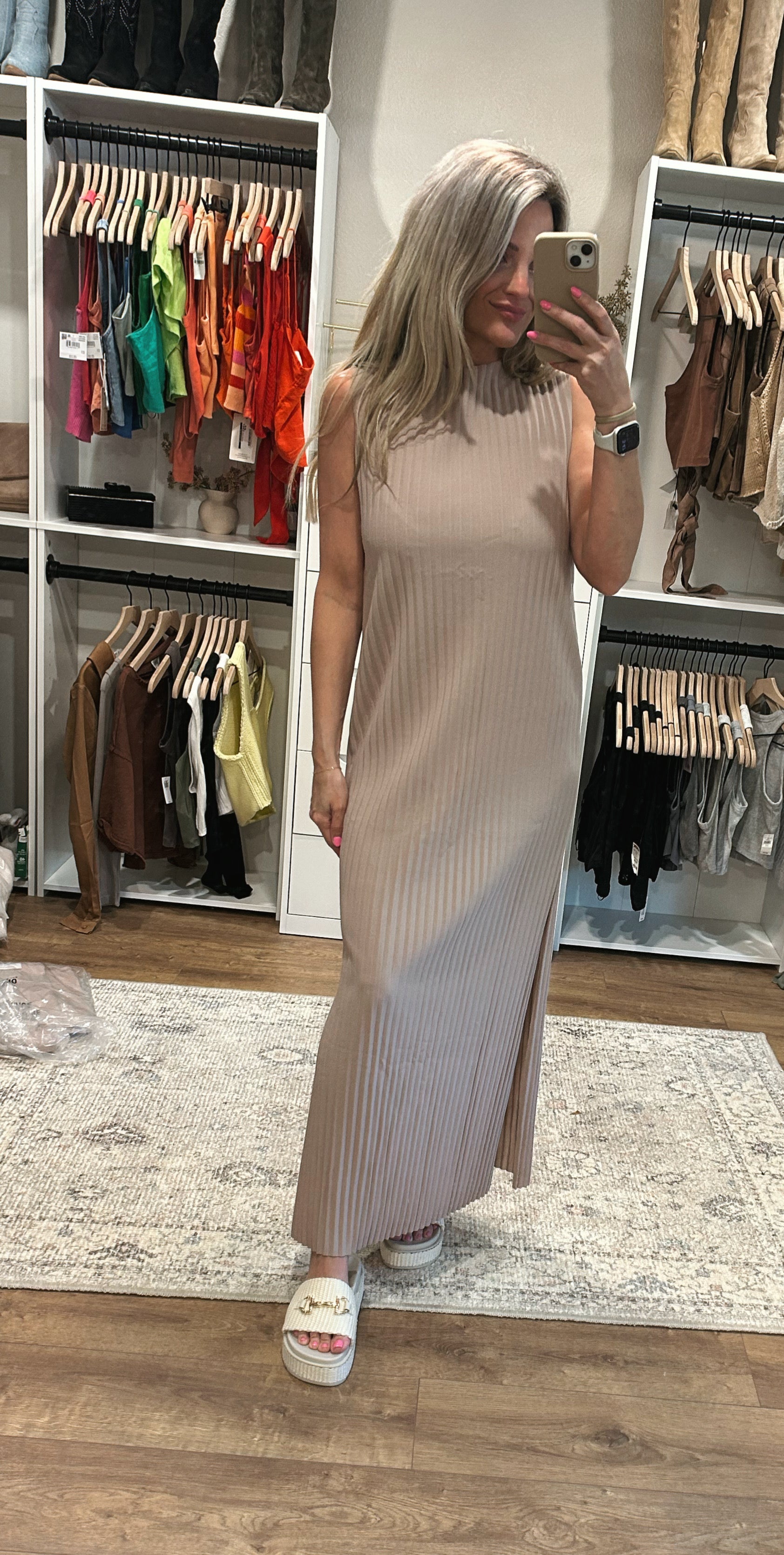 The Amelia pleated midi/maxi dress is the perfect mix of casual and dressy! Dress it up with a belt and heels or down with some sandals! It’s so lightweight and airy. High neck, side slits and a midi to full length depending on height and a relaxed/free fit