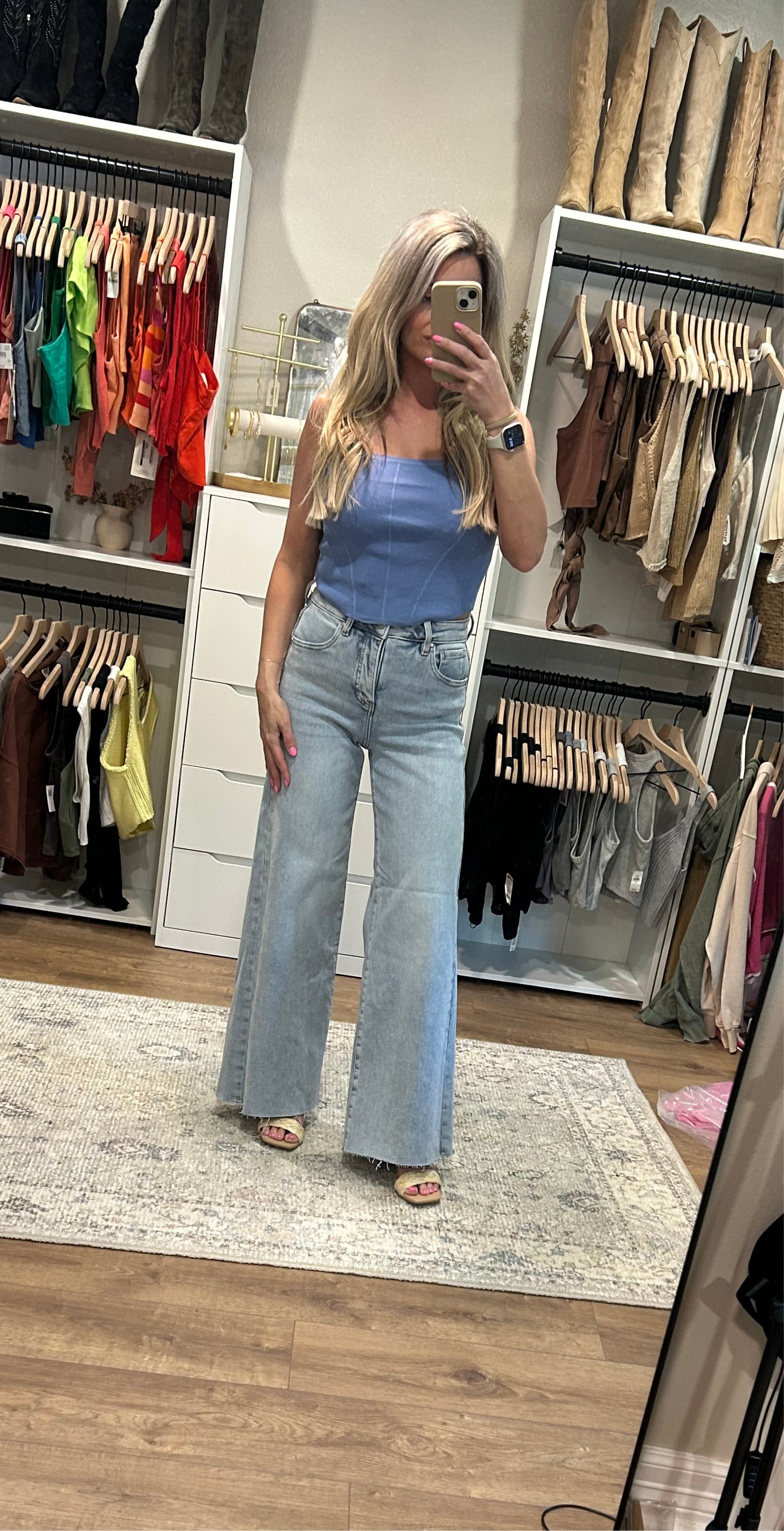 Faux corset knit tank featuring a square neckline. Super stretchy!