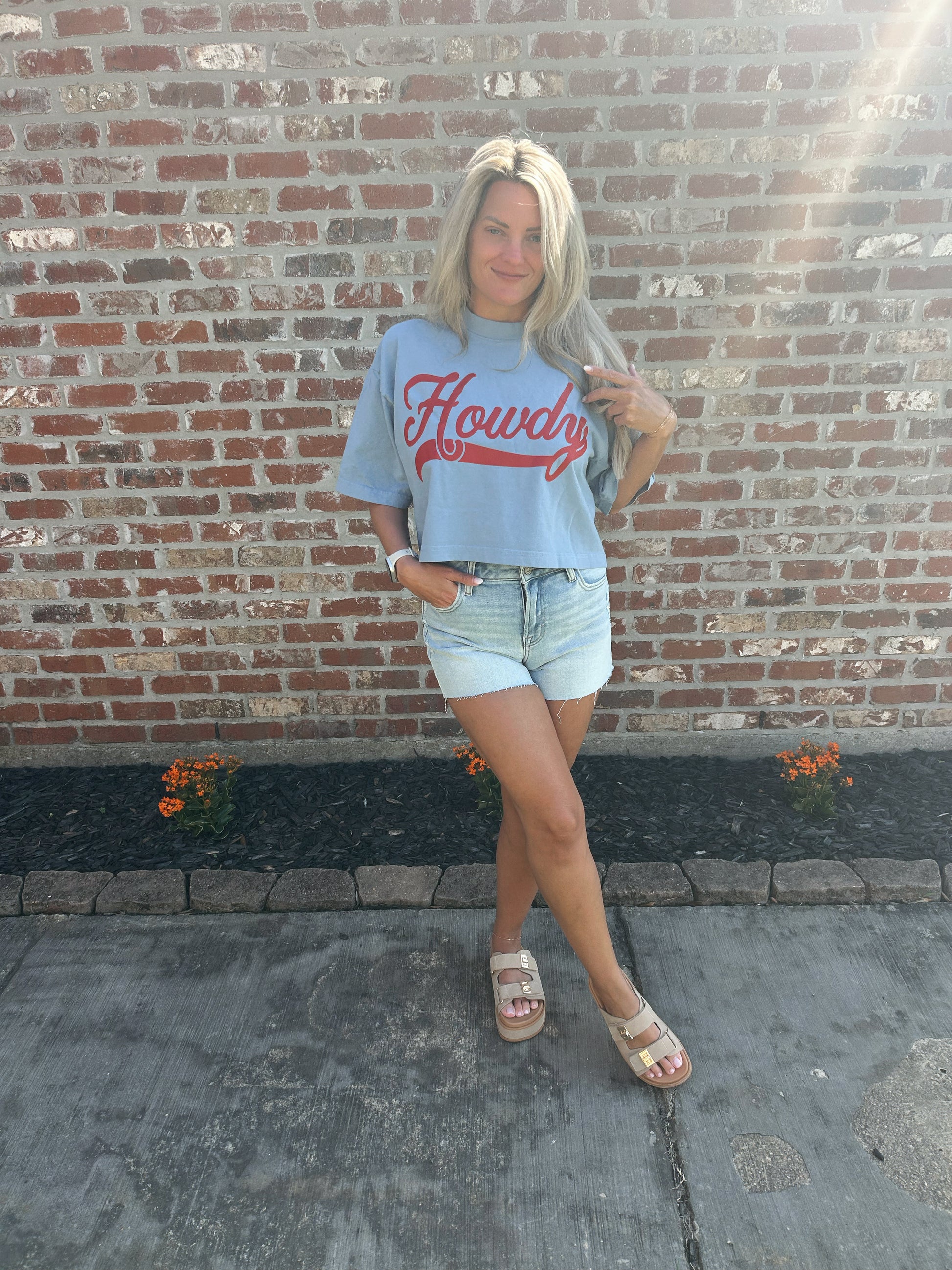Hidden denim stretch shorts in medium light wash. You will reach for these shorts over and over again.