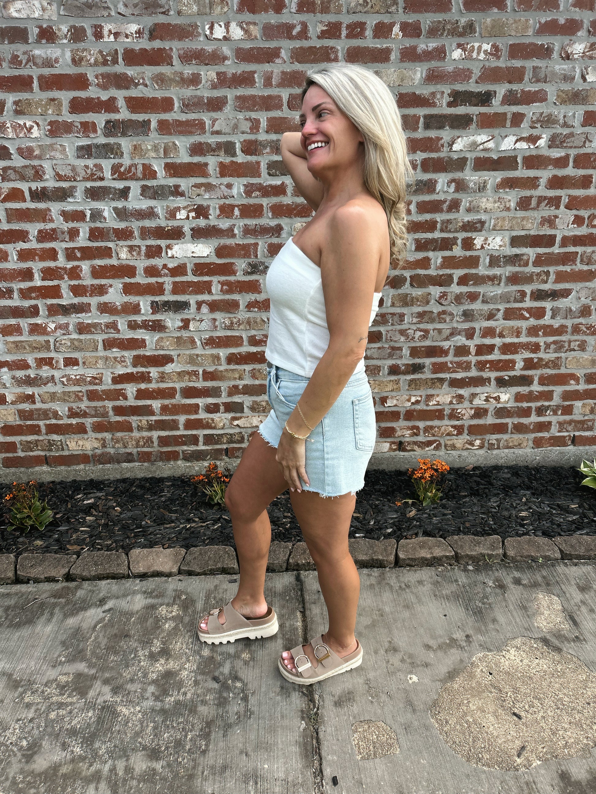 Hanna is in the size small but can also wear the medium for a more flowy look