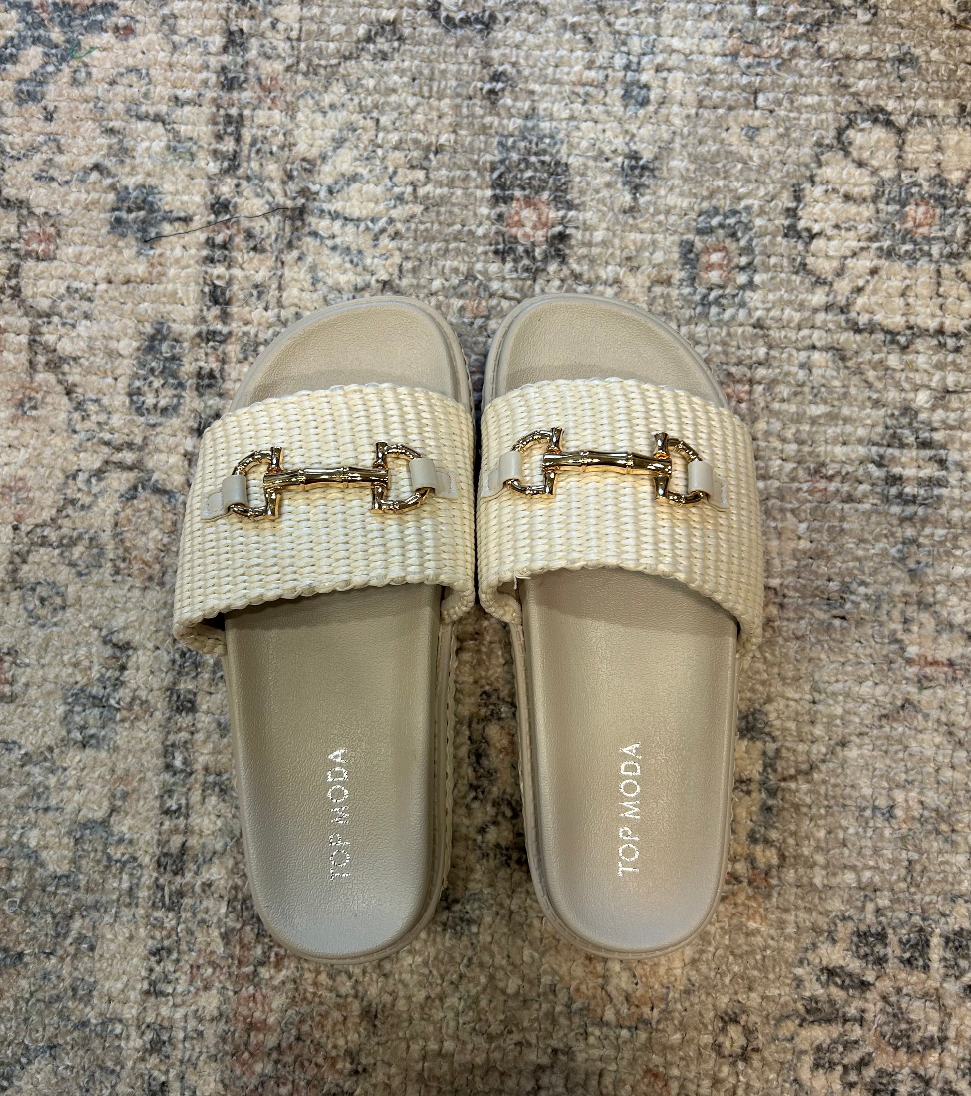 Our Panama Slide Platform Sandals are the shoe of the summer. So comfortable and stylish. Features gold accents.