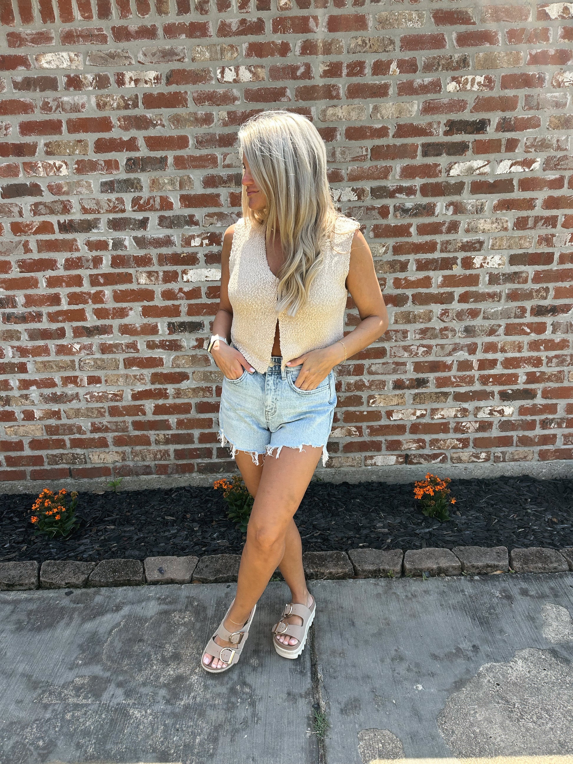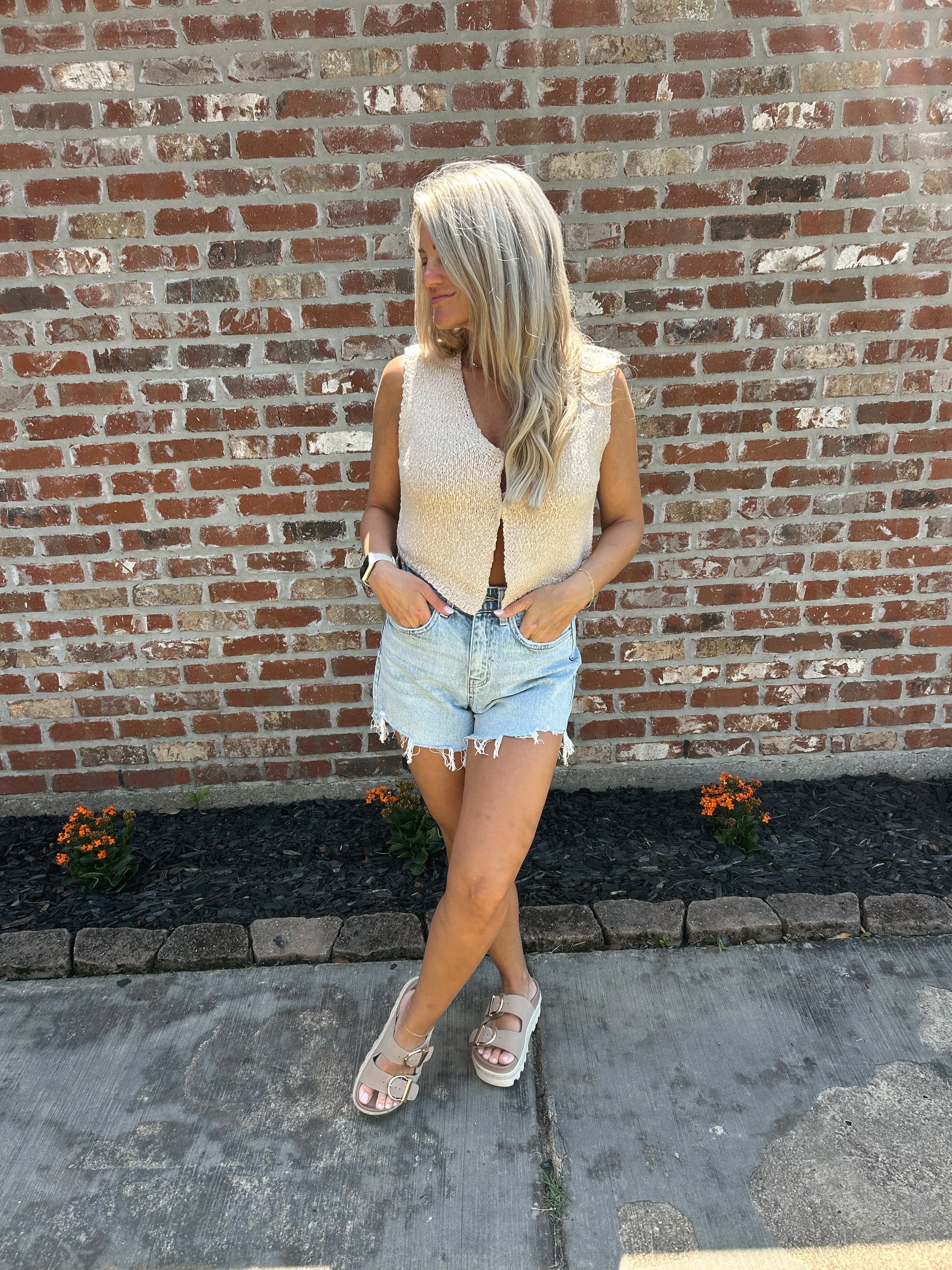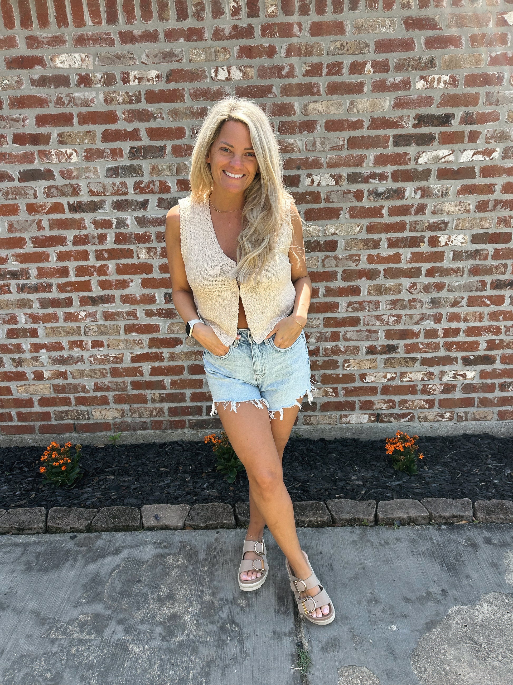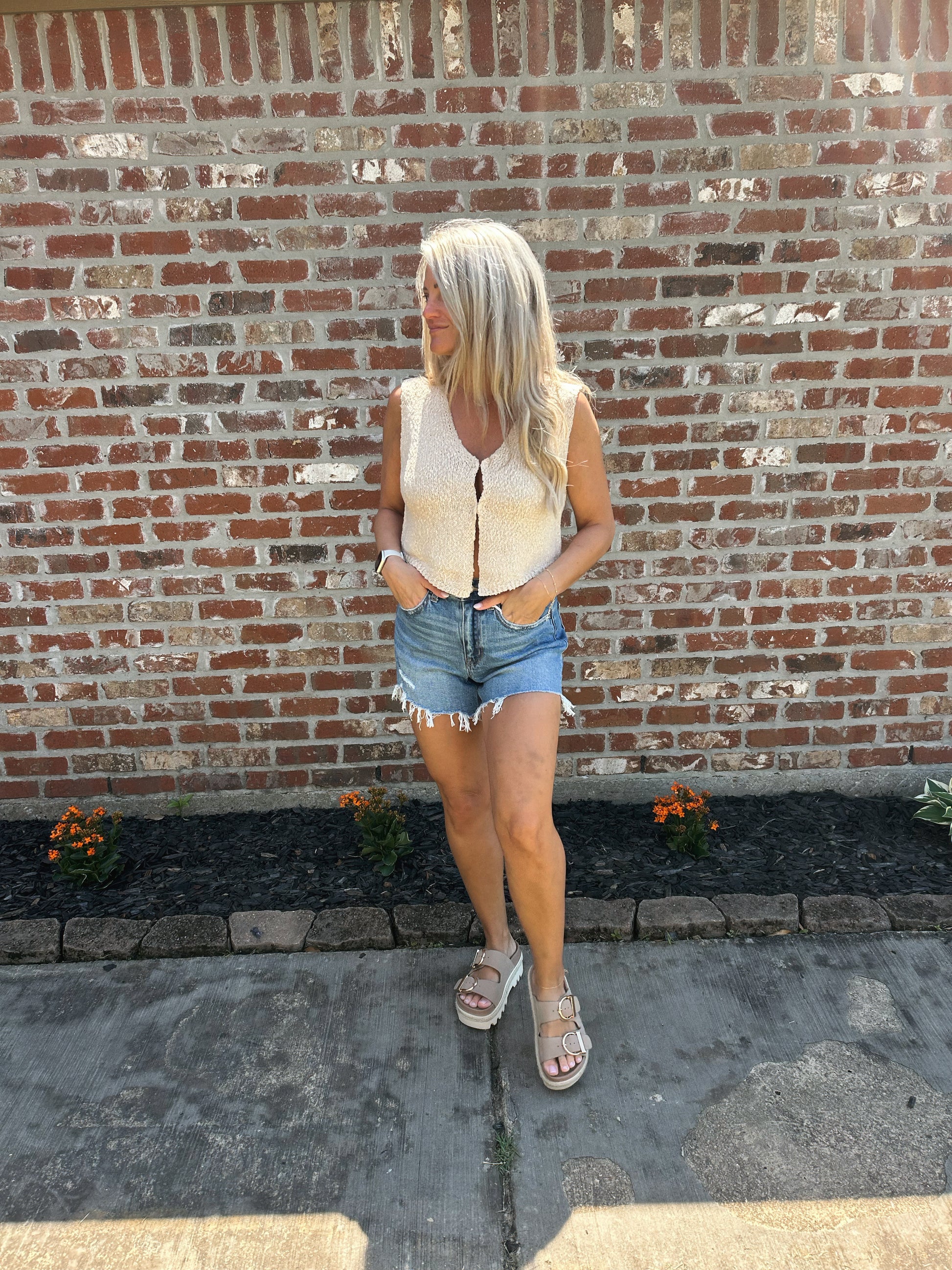 Knit hook front vest.