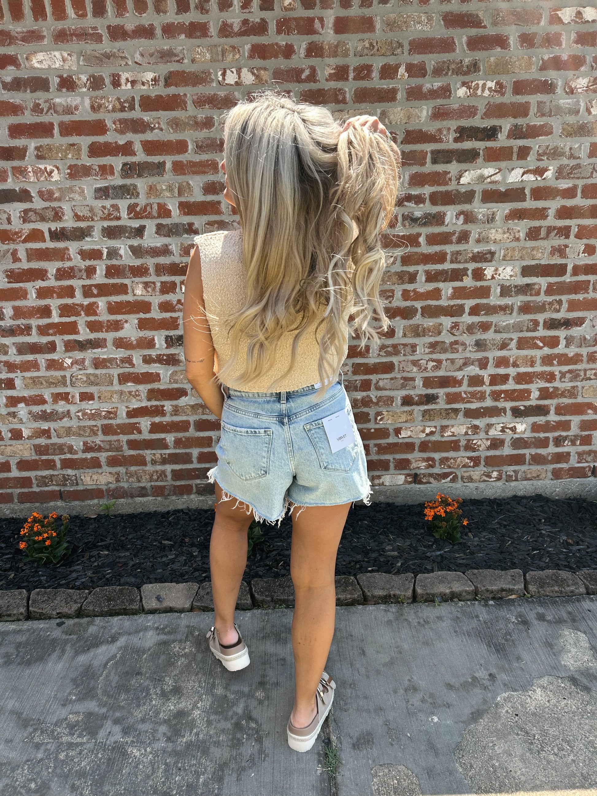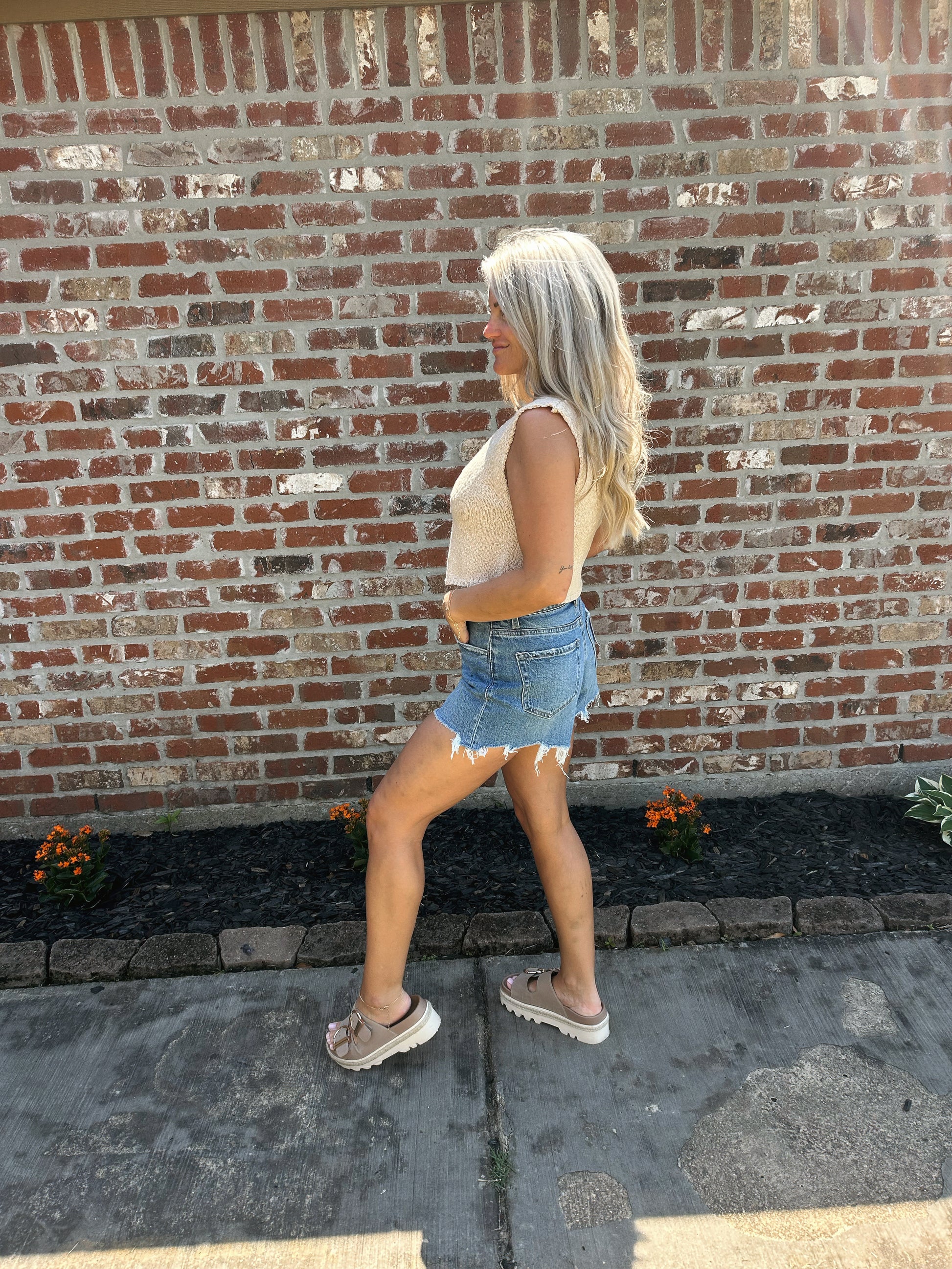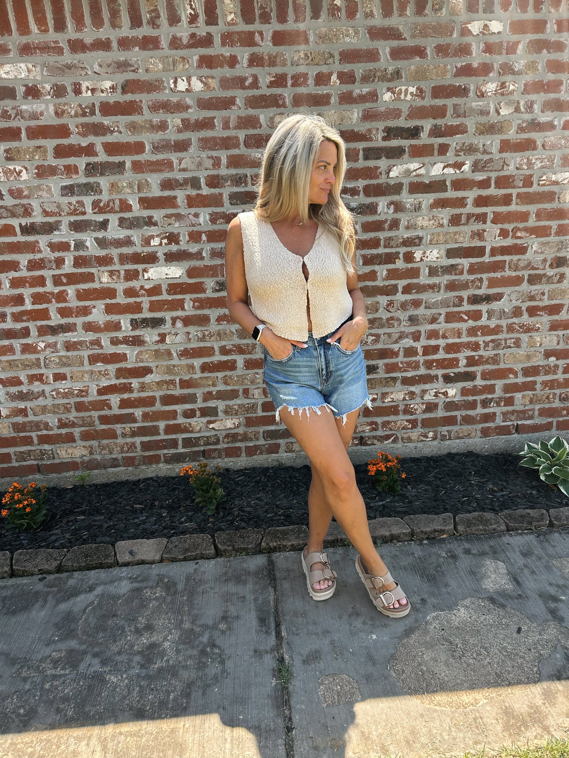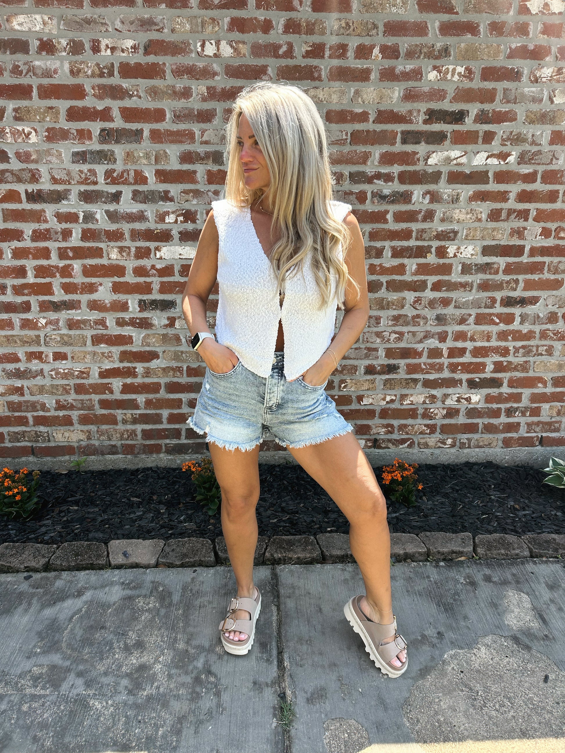 Knit hook front vest.