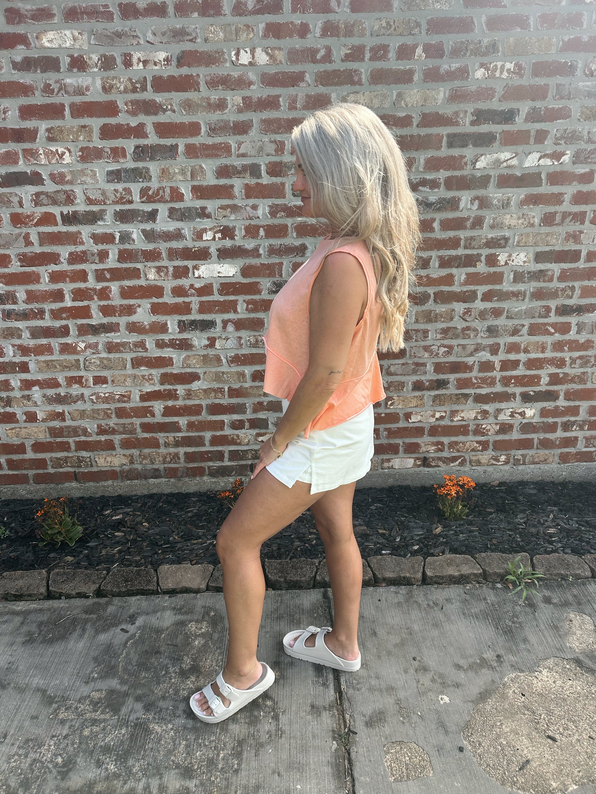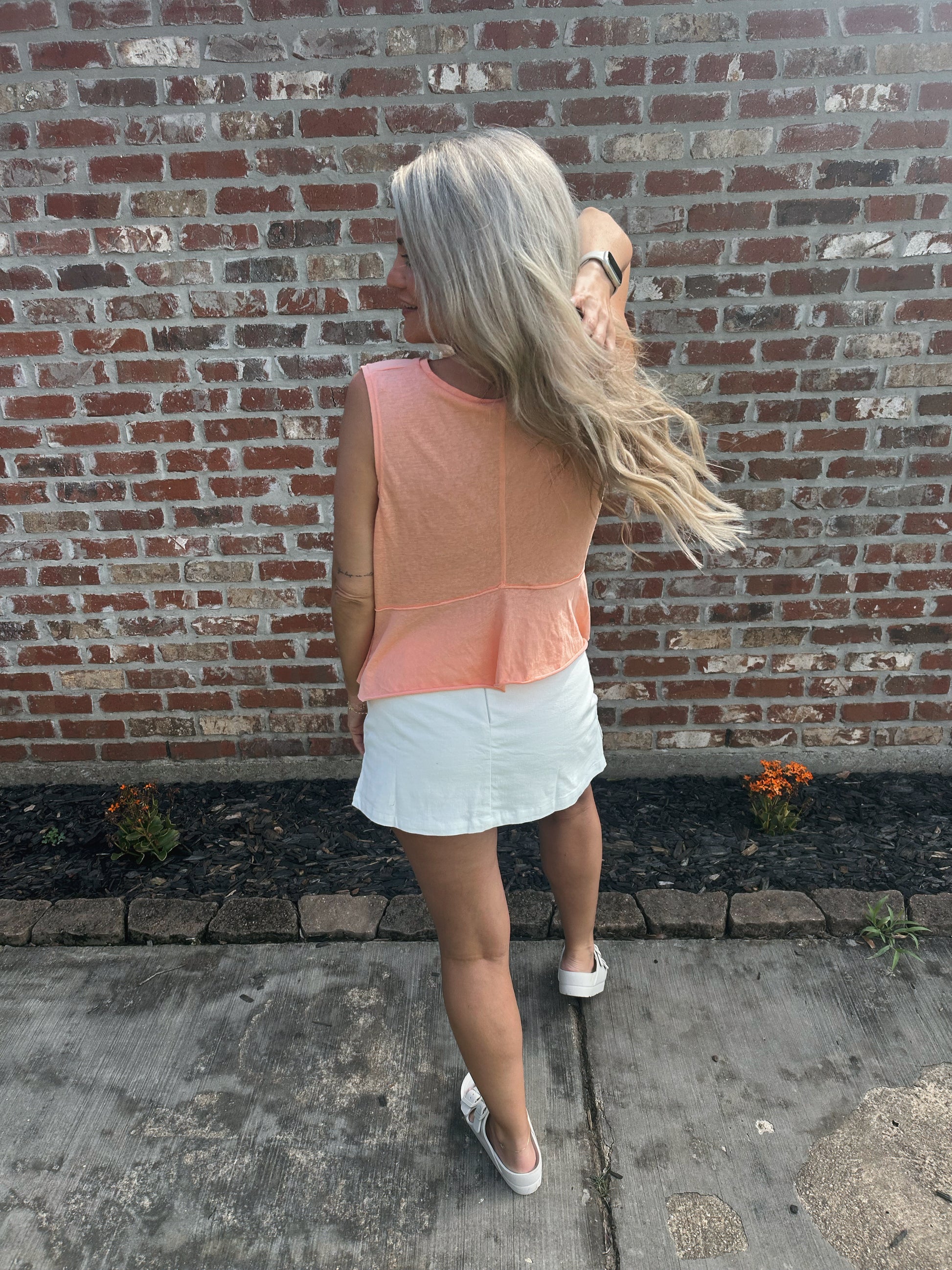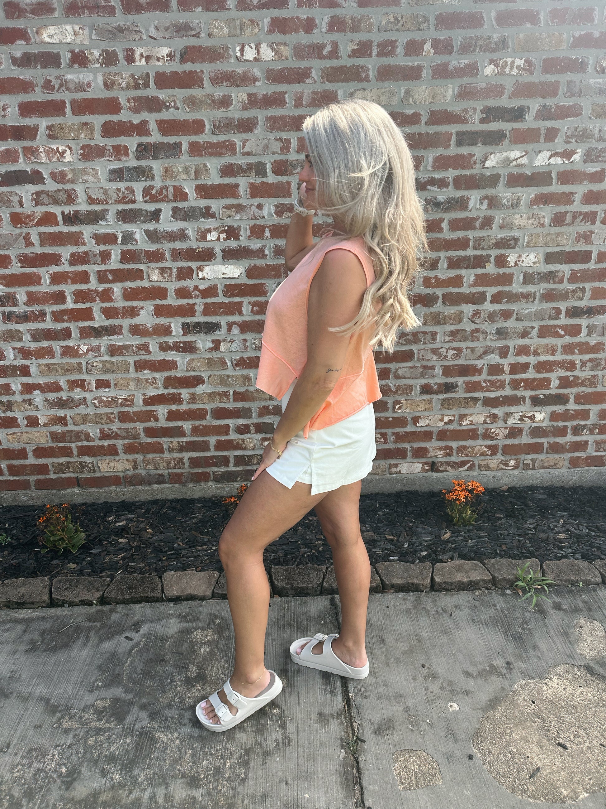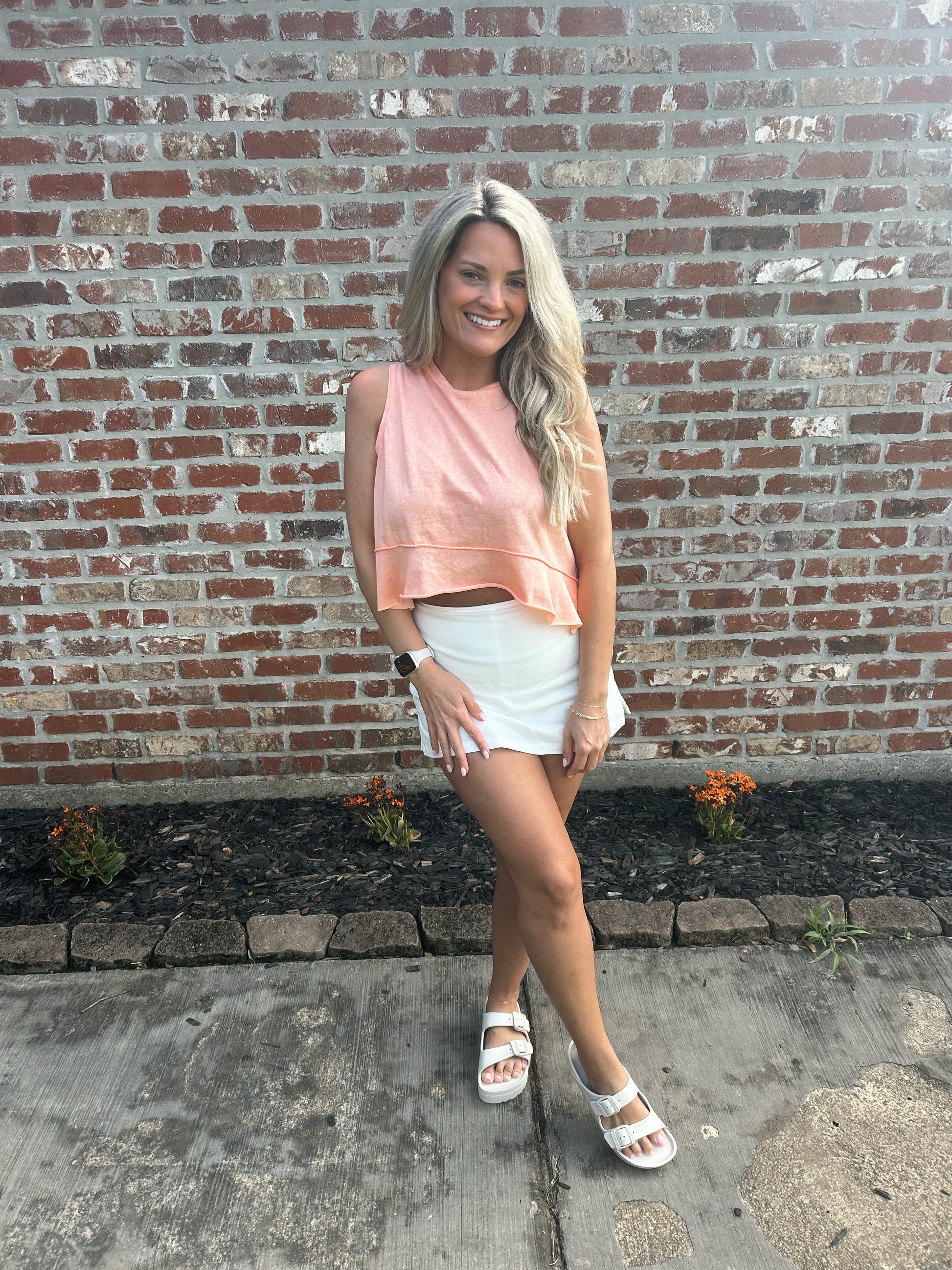 FP DUPE tank! Midi crop front, side slits and longer in the back. This tank is so lightweight, airy and perfect for summer with the raw hem detailing.